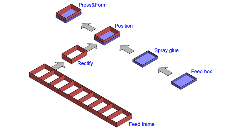 The magic happens during the Press & Form sequence. As the machine drives the cardboard through the Feed Frame, our proprietary sinking automatic support side press engages. This innovative mechanism ensures that the side press is completed within the glue drying time, maintaining perfect pressure on all glued surfaces until the bonds achieve optimal strength.